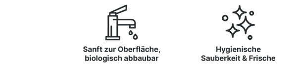 Sorgt für Frische und hygienische Sauberkeit im Bad. Entfernt Kalk, Schmutz und Seifenrückstände im Handumdrehen. Ein weiteres Plus: Wir liefern eine extrem langlebige Flasche dazu – auffüllen explizit erwünscht. Der Badreiniger ist materialfreundlich und kann auf allen säurebeständigen Oberflächen im Sanitärbereich eingesetzt werden. Der integrierte Metallschutz sorgt dafür, dass auch empfindliche Armaturen blitzblank sauber werden.