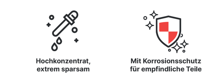 Dank der enthaltenen Korrosionsschutzinhibitoren werden auch empfindliche Teile nicht angegriffen.