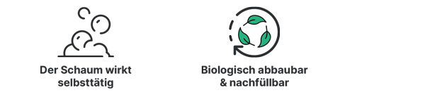 Die stabile Sprühflasche ist vielfach nachfüllbar und muss nicht nach einmaliger Verwendung entsorgt werden. Außerdem ist der Reiniger frei von Duftstoffen, Farbstoffen und Lösemittel.