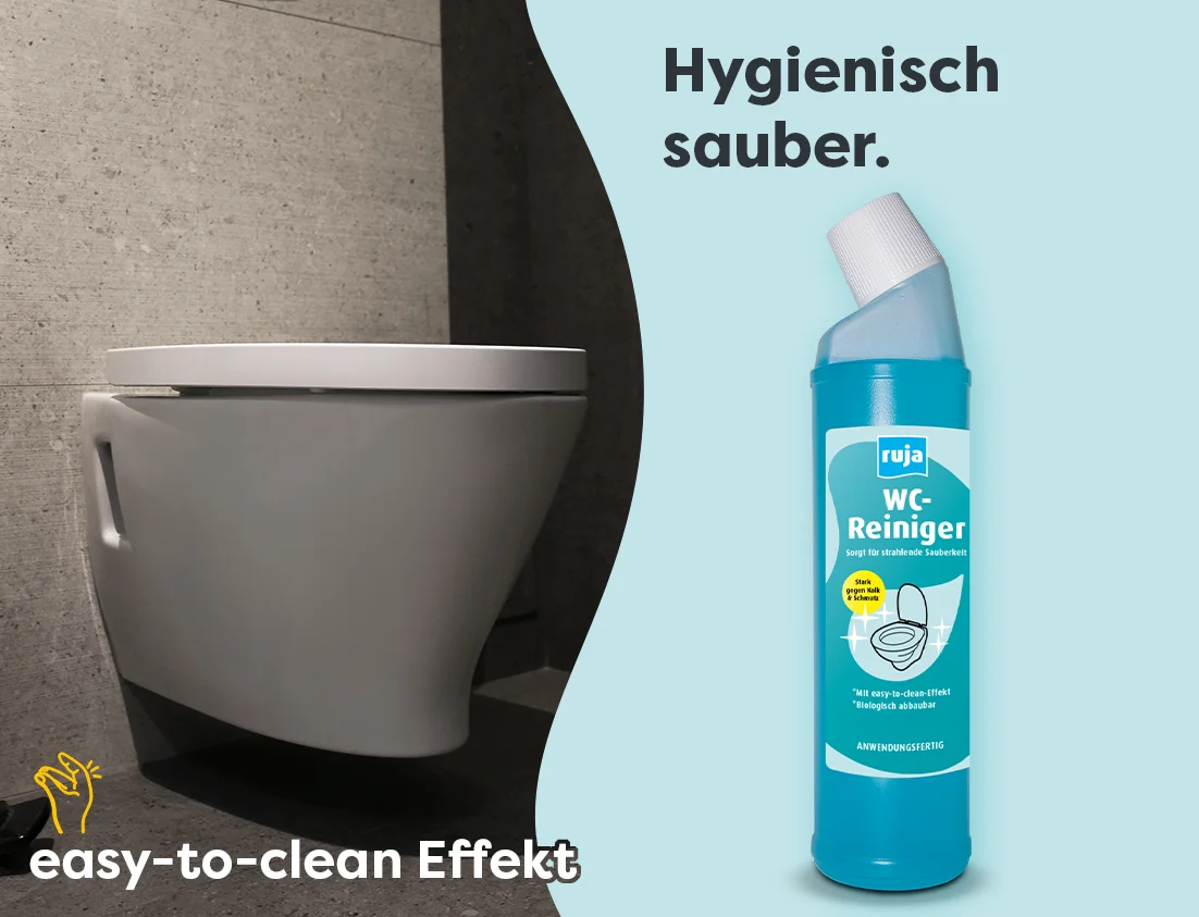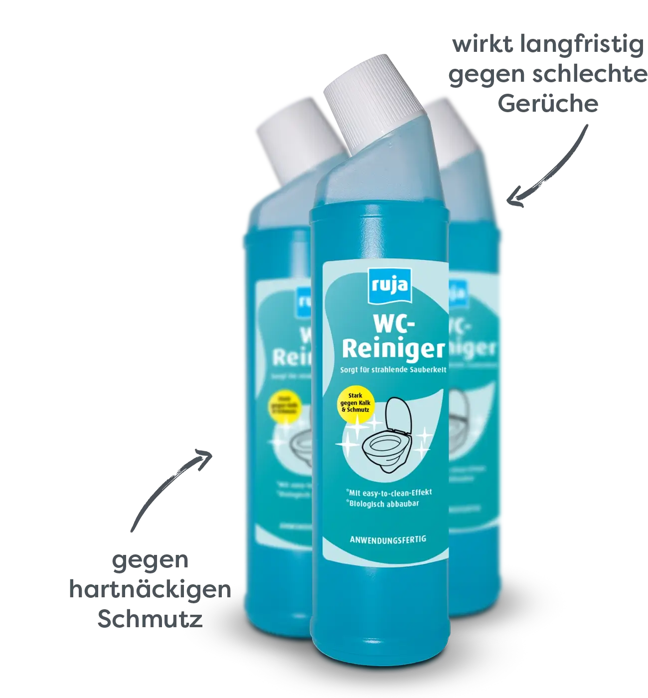 Unser WC-Reiniger wirkt gegen Kalk, schlechte Gerüche und hartnäckigen Schmutz in Ihrer Toilette. Er hinterlässt keine Farbrückstände im WC. Für ein Plus an Sauberkeit und Frische.