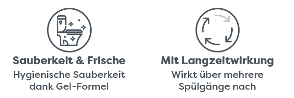 Mit seiner gelartigen Konsistenz haftet der WC-Reiniger an der Toilette an und wirkt über mehrere Spülgänge nach. Das sorgt für eine exzellente Langzeitwirkung.