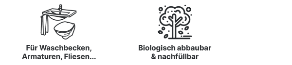 Unser Sanitär-Schaum ist biologisch abbaubar und dank der stabilen Schaumflasche auch vielfach wiederbefüllbar.